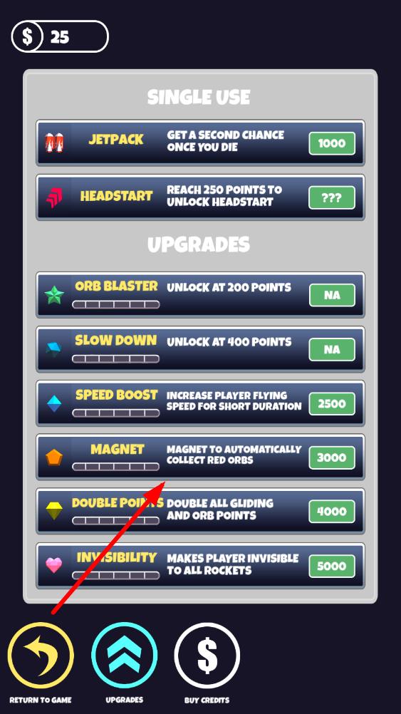 3、成功在火箭間多次切換,收集更多寶石,飛行更遠(yuǎn)距離,獲得豐富獎勵,感受太空滑翔的樂趣與挑戰(zhàn)成功的成就感。