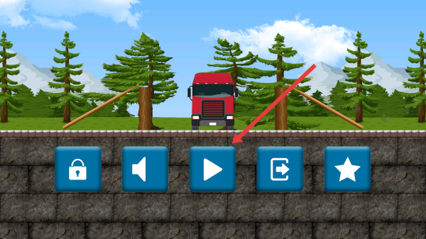1、在游戲初始界面,點(diǎn)擊屏幕中的三角形播放按鈕,進(jìn)入選擇關(guān)卡后駕駛車輛開始挑戰(zhàn)。