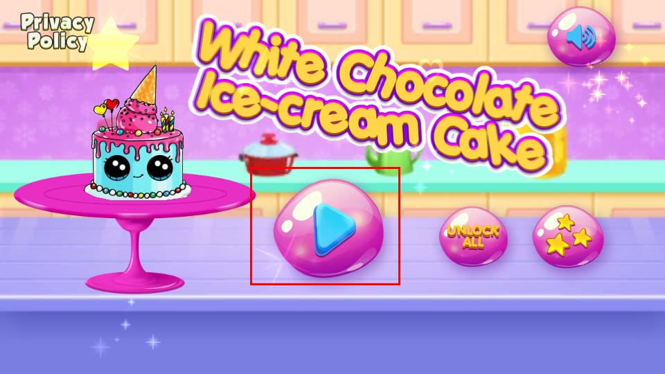 1、點擊粉色播放按鈕開啟游戲,快速進(jìn)入制作界面,開啟白巧克力冰淇淋蛋糕的制作之旅。