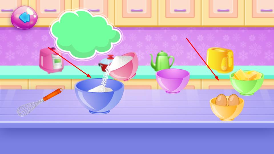 2、按提示將食材比如糖等倒入對應(yīng)容器,借助工具攪拌,逐步完成蛋糕基礎(chǔ)制作流程。
