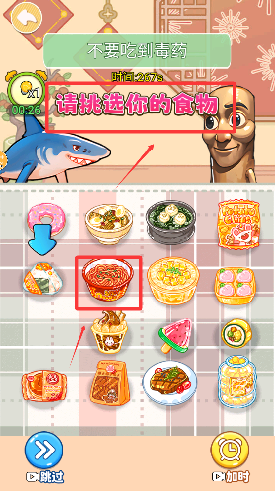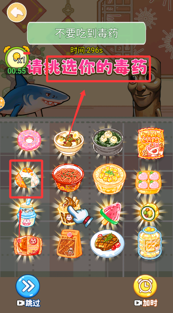 2、隨著關(guān)卡推進(jìn)每輪從外觀相似的零食中謹(jǐn)慎挑選,巧妙避開隱藏的毒藥,觀察對(duì)手行為獲取關(guān)鍵信息提示。