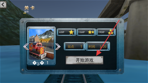 1、進入游戲關(guān)卡選擇界面,點擊開始游戲按鈕,開啟火車駕駛的游戲挑戰(zhàn)。