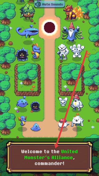 1、進入United-Monster's-Alliance游戲初始地圖場景,閱讀底部對話框的歡迎語,熟悉怪物聯(lián)盟世界觀,準(zhǔn)備開啟防御任務(wù)。