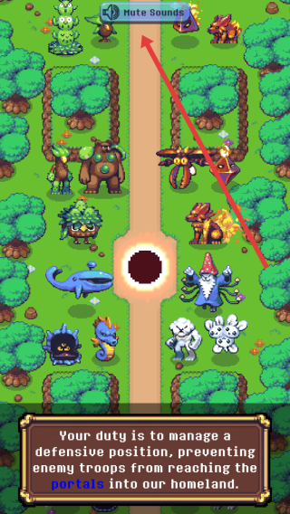 2、隨著地圖推進,可以點擊上方喇叭按鈕關(guān)閉聲音,查看底部提示對話框信息,明確職責(zé)是部署防御、阻攔敵人進攻傳送門。