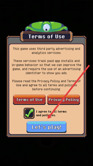3、在使用條款界面,勾選I-agree-to-all-terms-and-policies,點擊Let’s-play!,確認協(xié)議后正式進入游戲,開始怪物聯(lián)盟的防御戰(zhàn)斗冒險。