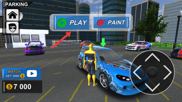 2、在停車場的界面,點擊PLAY的按鈕,在選定車輛后可以開啟游戲挑戰(zhàn),進入駕駛關(guān)卡。