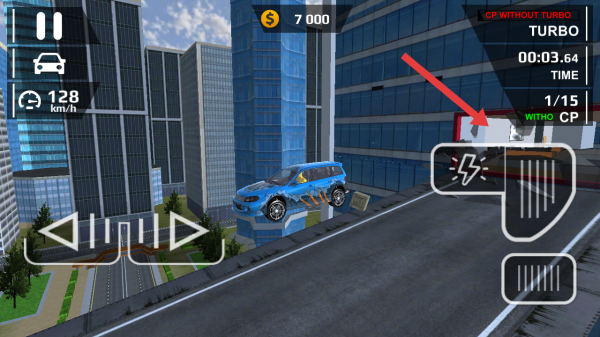 3、駕駛的過程中,點擊右側(cè)閃電圖標可以激活渦輪加速,短時間提升車速,助力突破賽道障礙。