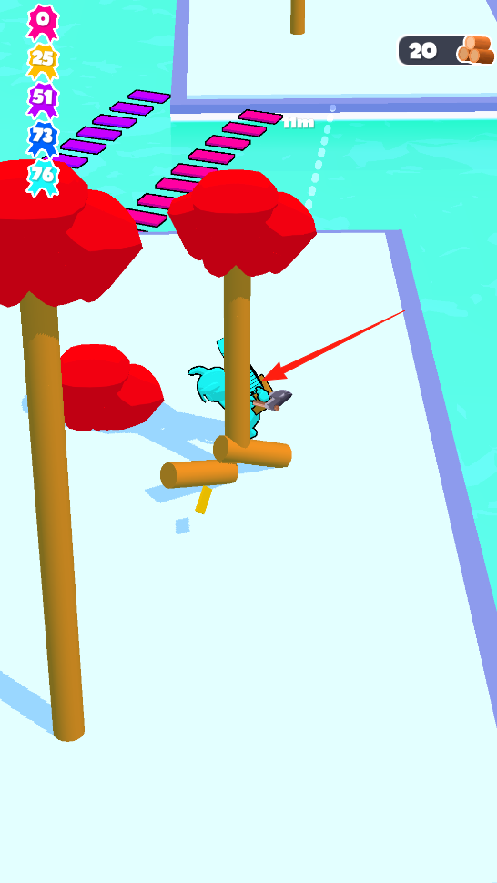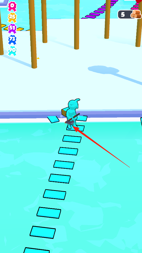 3、角色攜帶木材走上藍(lán)色棧道,通過(guò)操控角色移動(dòng),跨越水面障礙將木材運(yùn)送到對(duì)岸,注意棧道的承重與移動(dòng)節(jié)奏,完成資源運(yùn)輸體驗(yàn)棧道通行玩法。