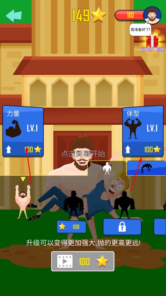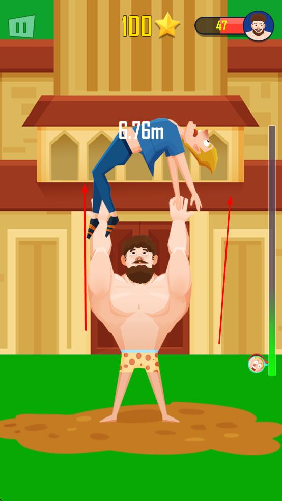 1、操控肌肉男角色,通過點擊或滑動屏幕控制角色將另一個角色拋起。
