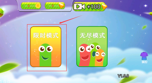 1、點擊紅框限時模式按鈕,開始計時挑戰(zhàn)小怪物收集。