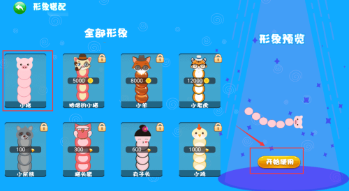 3、點擊紅框開始游戲按鈕,使用萌萌小豬進入冒險。
