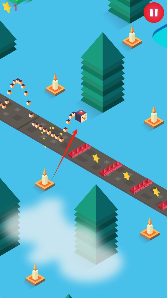 2、進(jìn)入游戲操作場(chǎng)景,根據(jù)箭頭提示,操控角色,收集星星,躲避障礙,完成游戲任務(wù)。