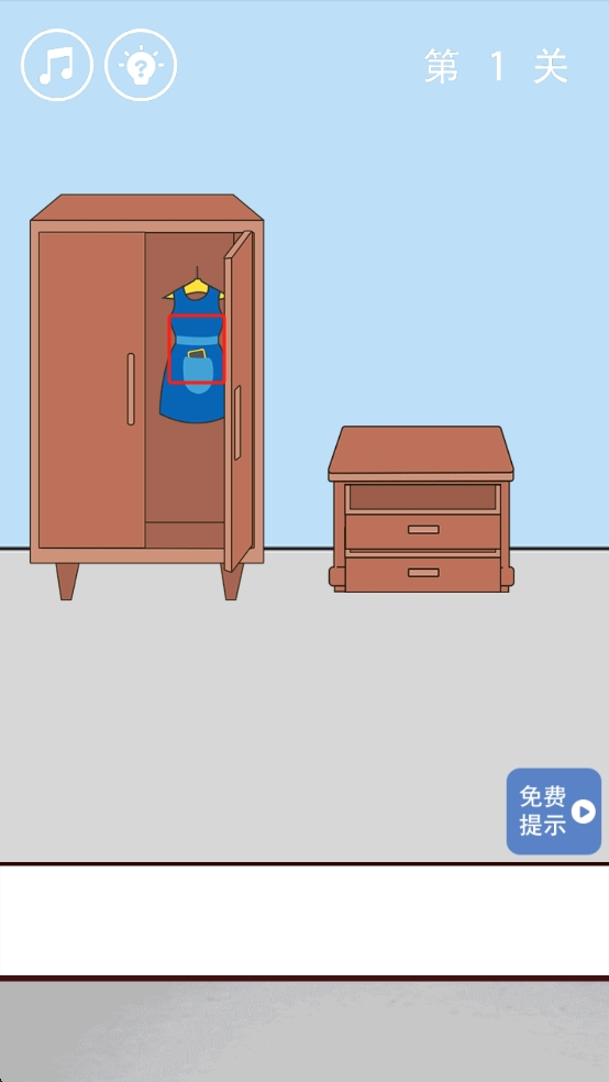 2、打開衣柜后,點(diǎn)擊藍(lán)色連衣裙上紅框標(biāo)注位置,獲取藏在衣物處的道具,完成本關(guān)關(guān)鍵操作。