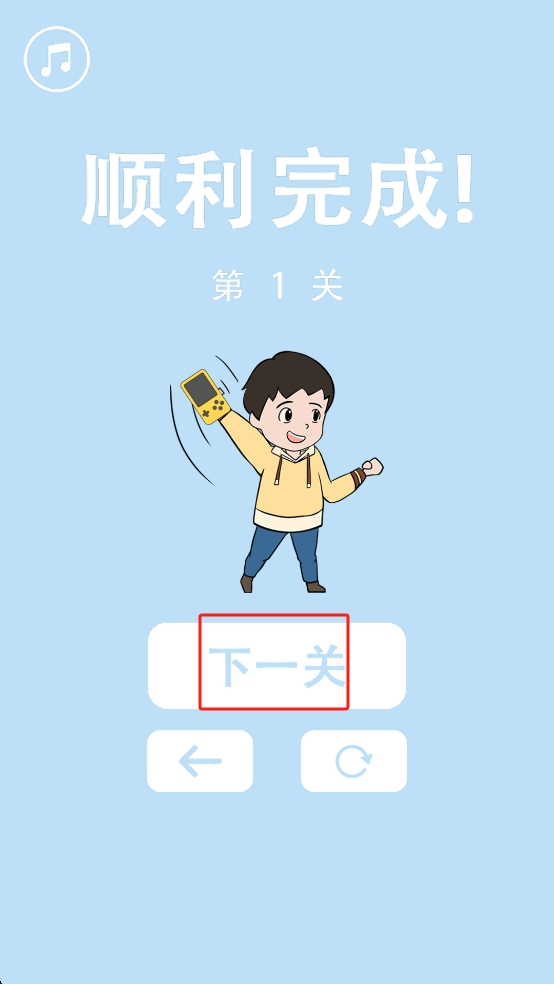 3、順利完成第1關(guān)后,點(diǎn)擊界面中下一關(guān)按鈕,即可進(jìn)入新關(guān)卡,繼續(xù)體驗(yàn)游戲解謎挑戰(zhàn)。