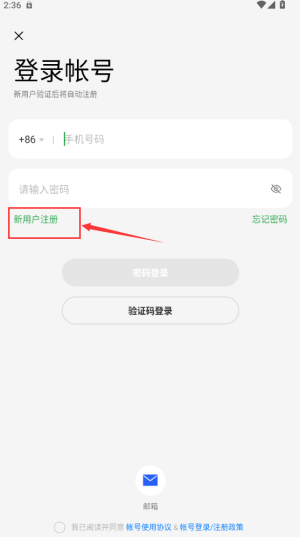 1、點(diǎn)擊紅框新用戶注冊(cè)按鈕,進(jìn)入手機(jī)號(hào)注冊(cè)流程。