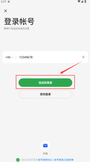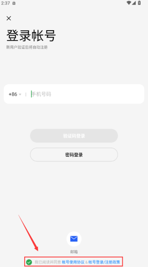 3、勾選紅框協(xié)議選項(xiàng),同意條款后繼續(xù)登錄操作。