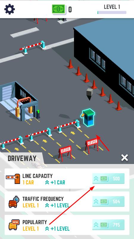 2、點(diǎn)擊界面中的洗車設(shè)施或相關(guān)區(qū)域,安排車輛進(jìn)入洗車流程,通過賺取的金錢,點(diǎn)擊界面提升車道容量。