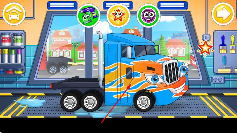 3、完成洗車后,還可點(diǎn)擊相關(guān)工具圖標(biāo),為卡車進(jìn)行裝飾,添加圖案等。