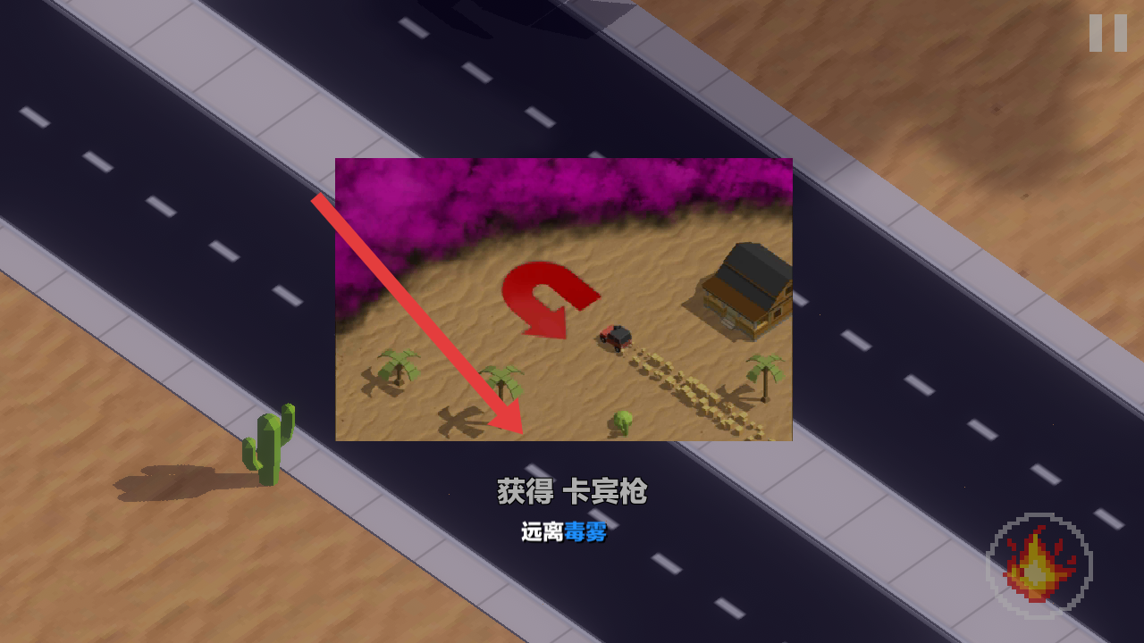 2、可以依據(jù)提示來遠(yuǎn)離毒霧,操控車輛跟隨箭頭轉(zhuǎn)向,注意規(guī)避紫色毒霧的區(qū)域,保障自己生存。