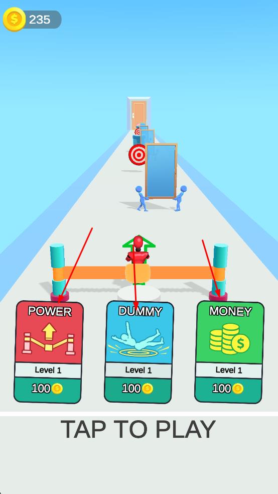 3、可通過消耗金幣提升角色的力量、增加假人數(shù)量或獲取更多金幣,助力完成關(guān)卡挑戰(zhàn)。