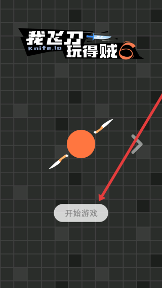 1、在我飛刀玩得賊6初始界面中,按照紅色箭頭指向處點(diǎn)擊開始游戲按鈕,進(jìn)入游戲操作指引關(guān)卡。