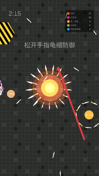 3、如果遇到危險(xiǎn)時(shí),可以根據(jù)提示松開手指觸發(fā)龜縮防御,躲避敵人攻擊,保障生存并繼續(xù)戰(zhàn)斗。