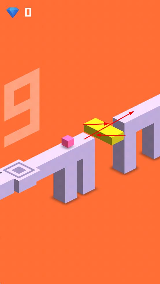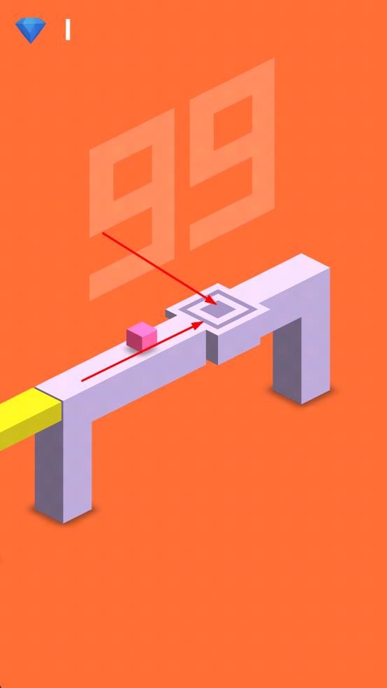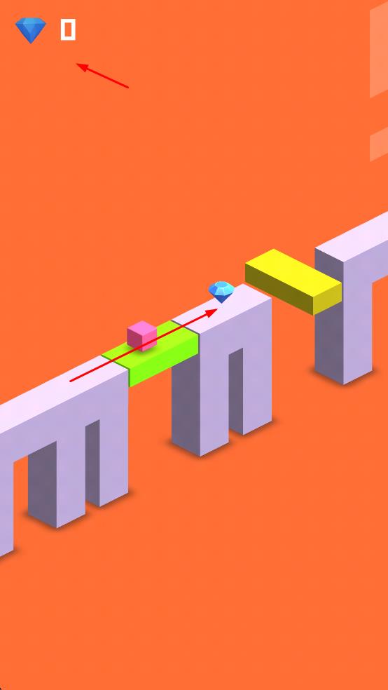 1、操控粉色方塊在賽道上移動(dòng),通過特定操作使方塊在不同顏色的平臺(tái)上移動(dòng),跨越障礙物。