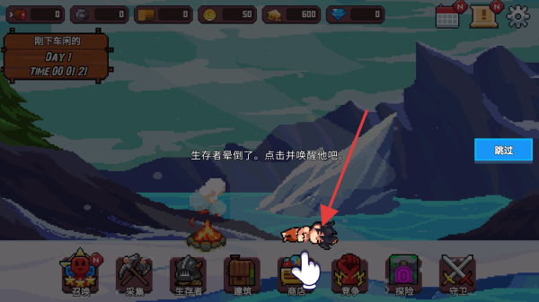 3、根據(jù)紅色箭頭所指的方向,點(diǎn)擊暈倒的生存者,喚醒他,完成游戲任務(wù),獲取游戲得分和獎(jiǎng)勵(lì),積累游戲資源,提升角色的能力。