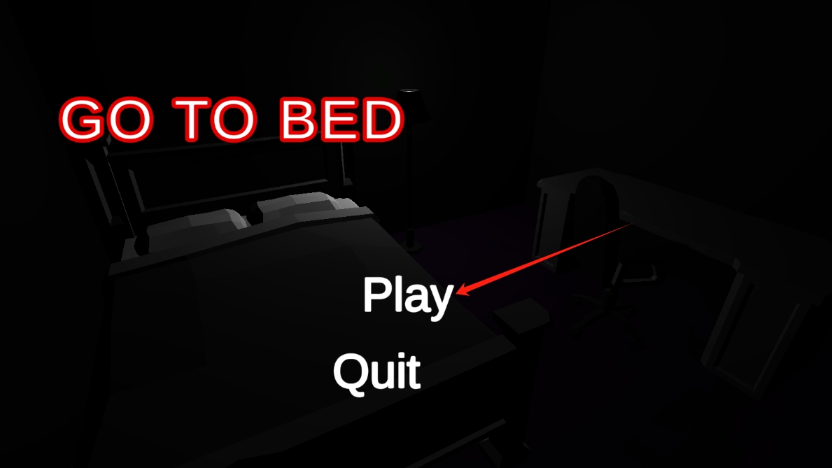 1、啟動(dòng)游戲后,點(diǎn)擊Play,進(jìn)入恐怖冒險(xiǎn),在黑暗臥室中展開探索,點(diǎn)擊按鈕進(jìn)入游戲。