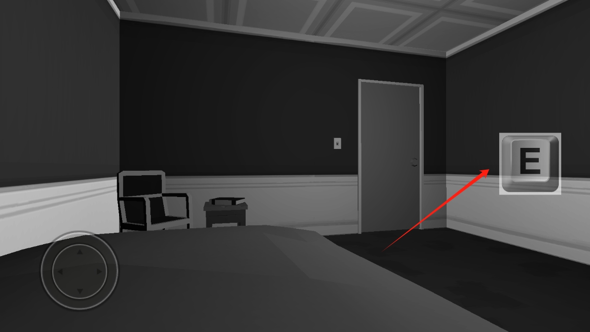 3、遇到可互動(dòng)場(chǎng)景時(shí),點(diǎn)擊E鍵,與物品或門互動(dòng),解開謎題,逃離恐怖房間,點(diǎn)擊按鈕上床睡覺。