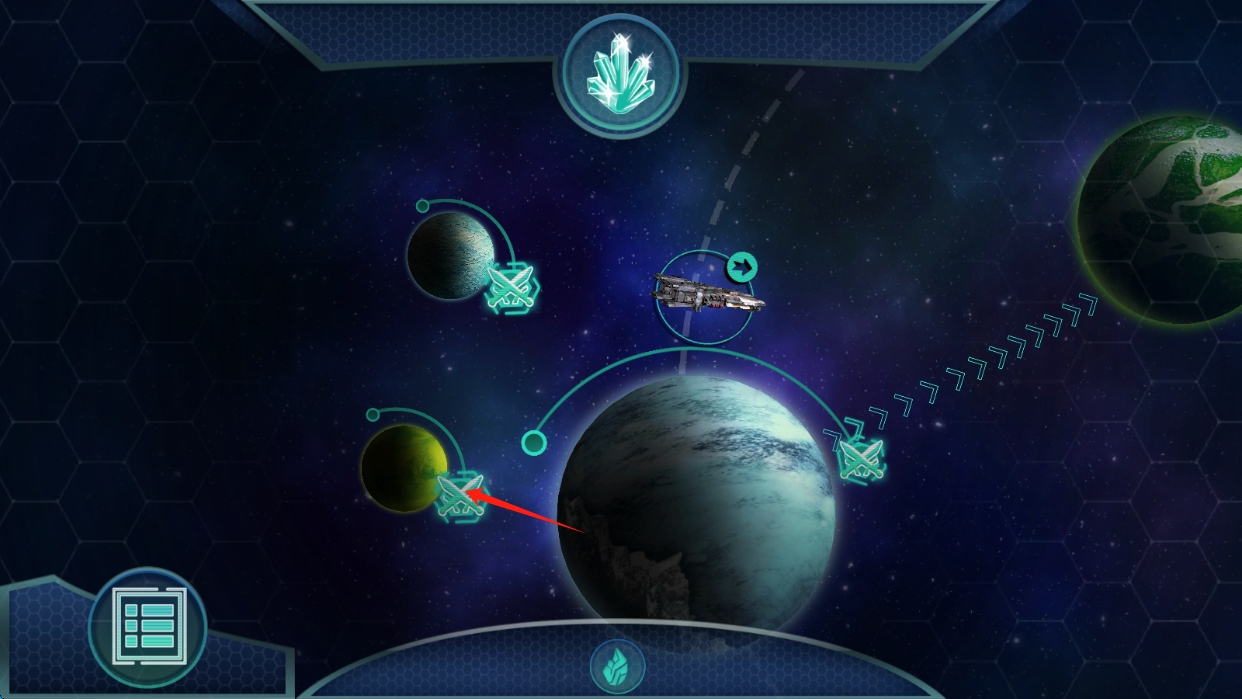 2、在星系地圖界面,選擇不同星球,進入戰(zhàn)斗,收集資源,提升飛船戰(zhàn)斗能力,點擊選擇關(guān)卡。
