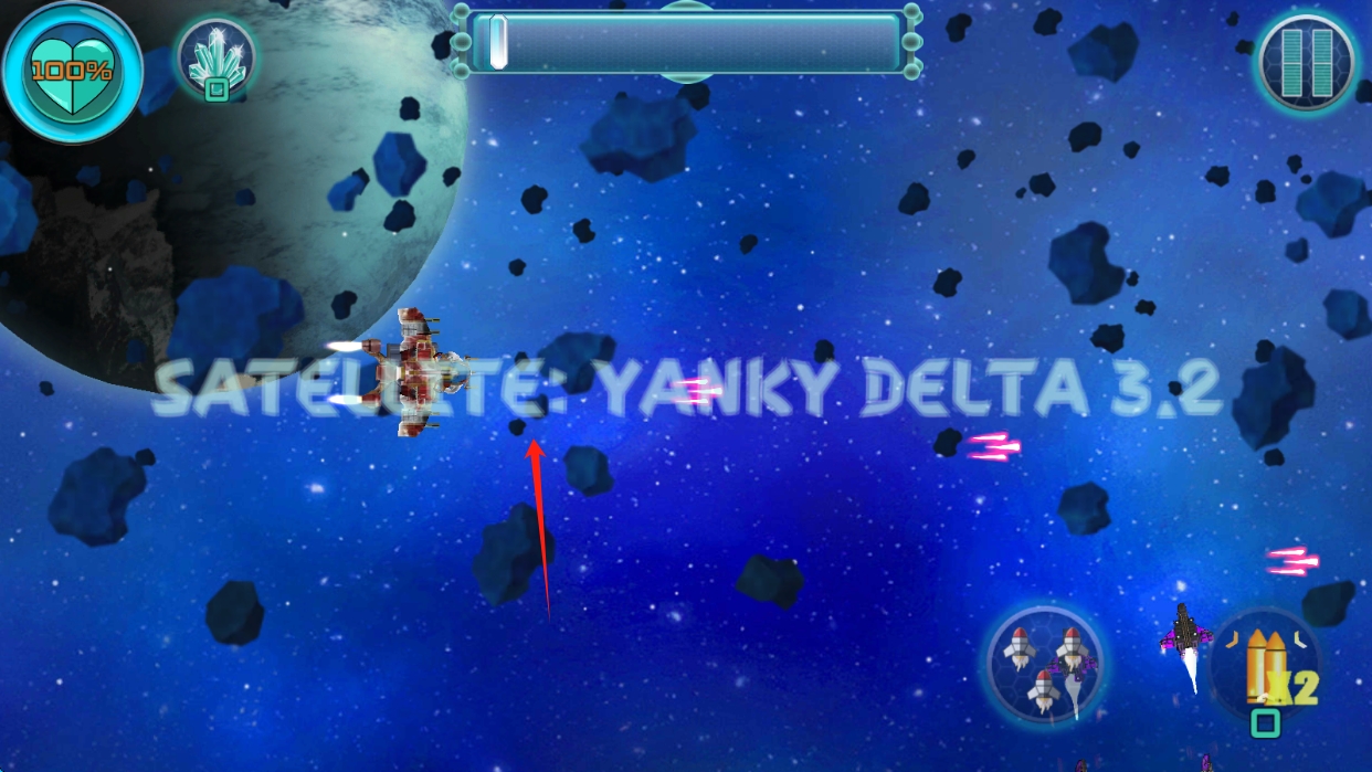 3、游戲中操控飛船,在太空中射擊敵人,躲避隕石,關(guān)注衛(wèi)星信息,合理利用道具,完成關(guān)卡任務(wù)。