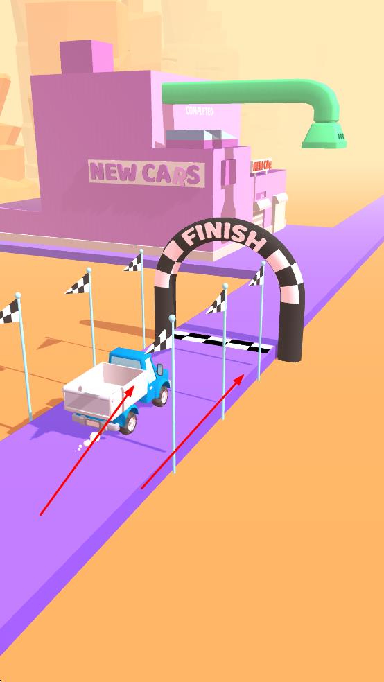 1、操控藍色卡車在紫色的道路上行駛,可通過特定操作控制卡車的前進方向,沿著道路向目標方向移動。
