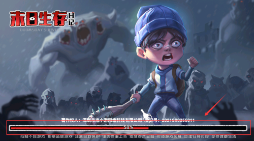 1、等待紅框加載進度到58%,準備開始末日生存游戲。