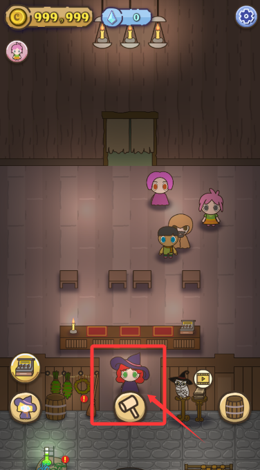 1、啟動游戲后,點擊畫面底部的鐵錘按鈕,即可激活特殊操作模式。