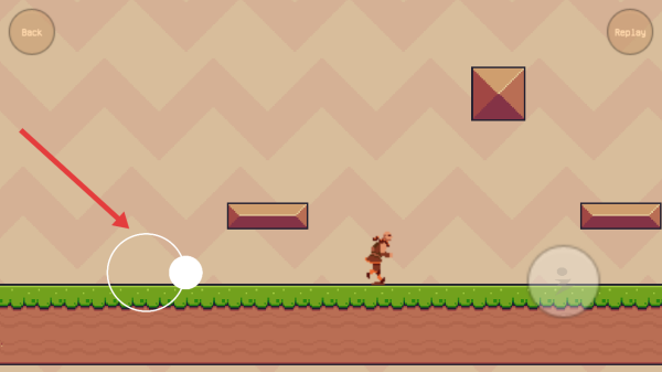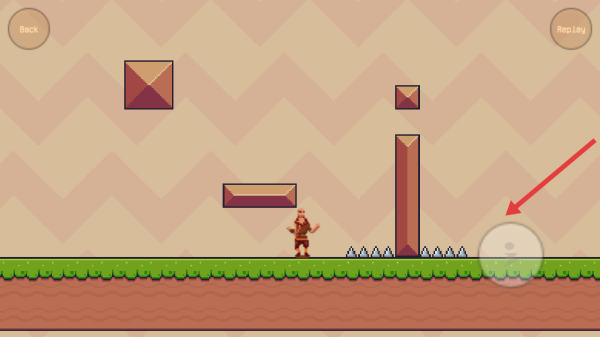 2、游戲場(chǎng)景遇尖刺障礙,點(diǎn)擊右側(cè)圓形按鍵,操控武僧跳躍,避開危險(xiǎn)地形,持續(xù)推進(jìn)關(guān)卡進(jìn)度。