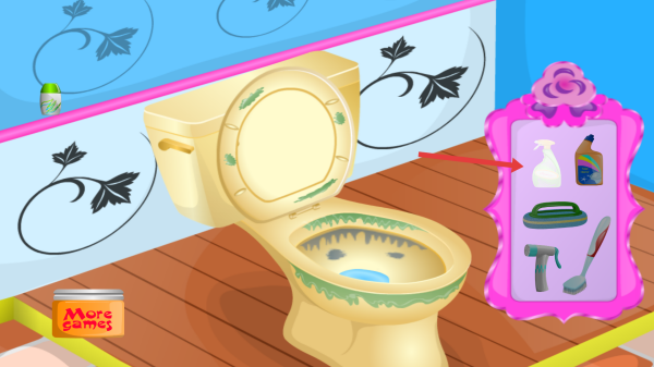 1、在清潔游戲中,面對(duì)臟污馬桶,從右側(cè)道具欄選清潔劑,為清潔做準(zhǔn)備。