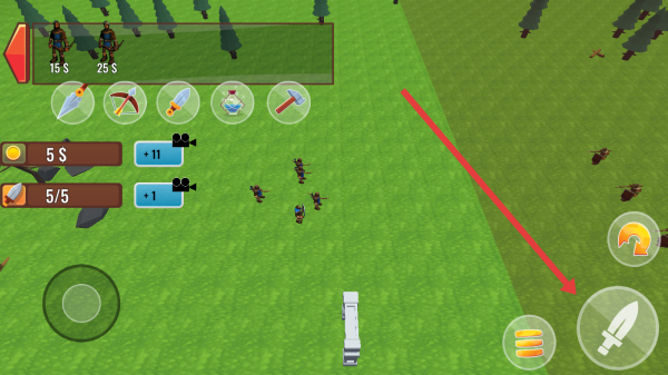 3、完成士兵部署操作后,點擊右下角帶刀劍圖標的按鈕,向敵方主動發(fā)起進攻,推進戰(zhàn)斗節(jié)奏。