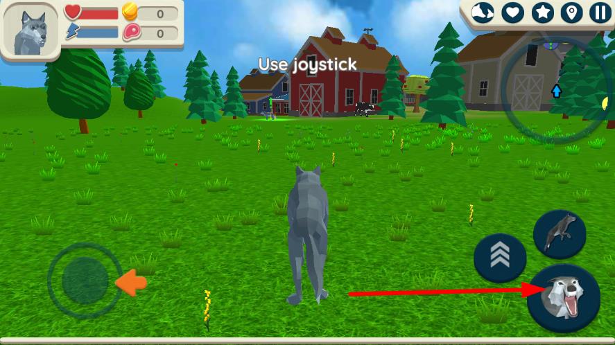 1、進(jìn)入游戲后操控灰狼熟悉草原環(huán)境,學(xué)習(xí)捕獵技巧捕捉野兔、鹿等獵物,獲取能量維持生存,避開(kāi)熊、獵人等威脅。