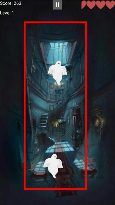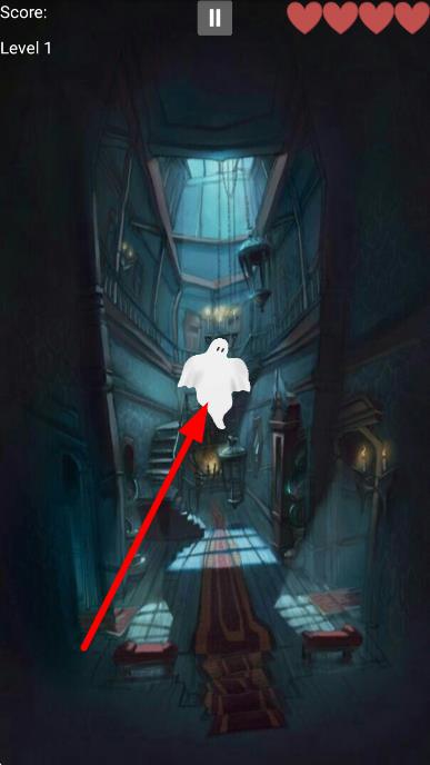3、場景中出現(xiàn)多個幽靈,按箭頭提示,在紅色框選的區(qū)域內(nèi),留意幽靈位置,靈活操作,避免損失愛心,持續(xù)獲取分?jǐn)?shù)。