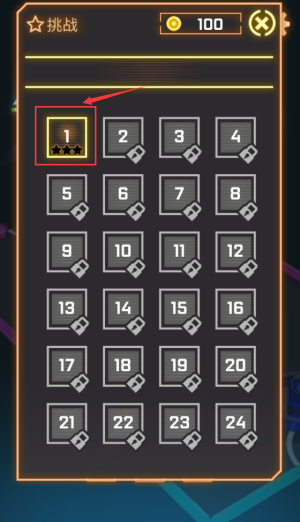 2、選擇紅框數(shù)字1關(guān)卡,開始第一關(guān)冰球挑戰(zhàn)任務(wù)。