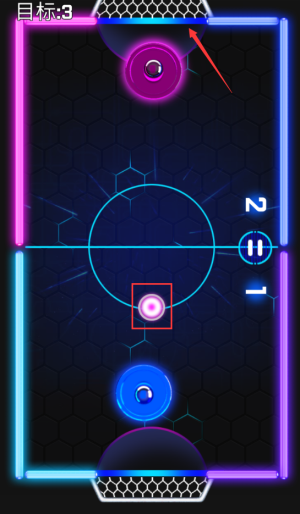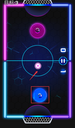 3、控制紅框藍色圓盤,擊打冰球完成目標3分。