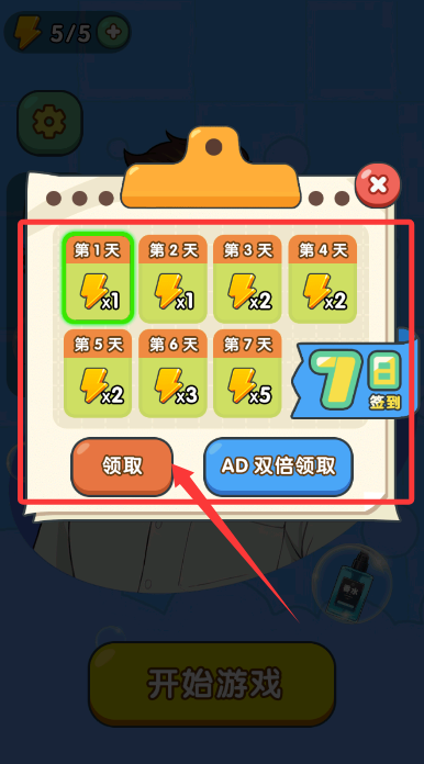 1、首次登錄游戲,可在簽到頁面選擇普通領(lǐng)取或觀看廣告獲得雙倍獎勵。