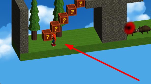 2、角色前行遇到方塊和黑色神秘區(qū)域,靠近黑色區(qū)域時要小心,可能是傳送點或隱藏陷阱,可嘗試觸碰探索,同時注意躲避野豬等敵人。