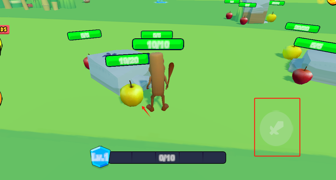 3、走過(guò)去雪梨那里點(diǎn)擊紅色框框的攻擊鍵打它。