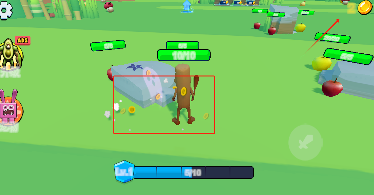 4、打爛雪梨會(huì)爆出金幣,金幣可以?xún)稉Q東西。