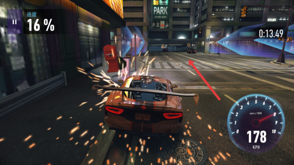 2、在快要撞毀障礙物要減速,盡量要沿賽道綠色路線無阻礙區(qū)行駛,需要躲垃圾桶、路牌等。