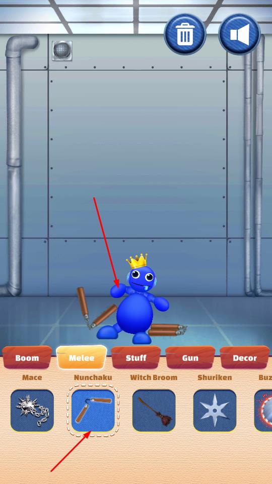 1、擇選武器展開擊打:超多武器可供自由選擇,以暴打彩虹朋友為核心,揮動(dòng)武器發(fā)起攻擊,每一次擊打都配合富有打擊感的音樂,讓動(dòng)作與音效共振,釋放積攢的情緒與壓力。