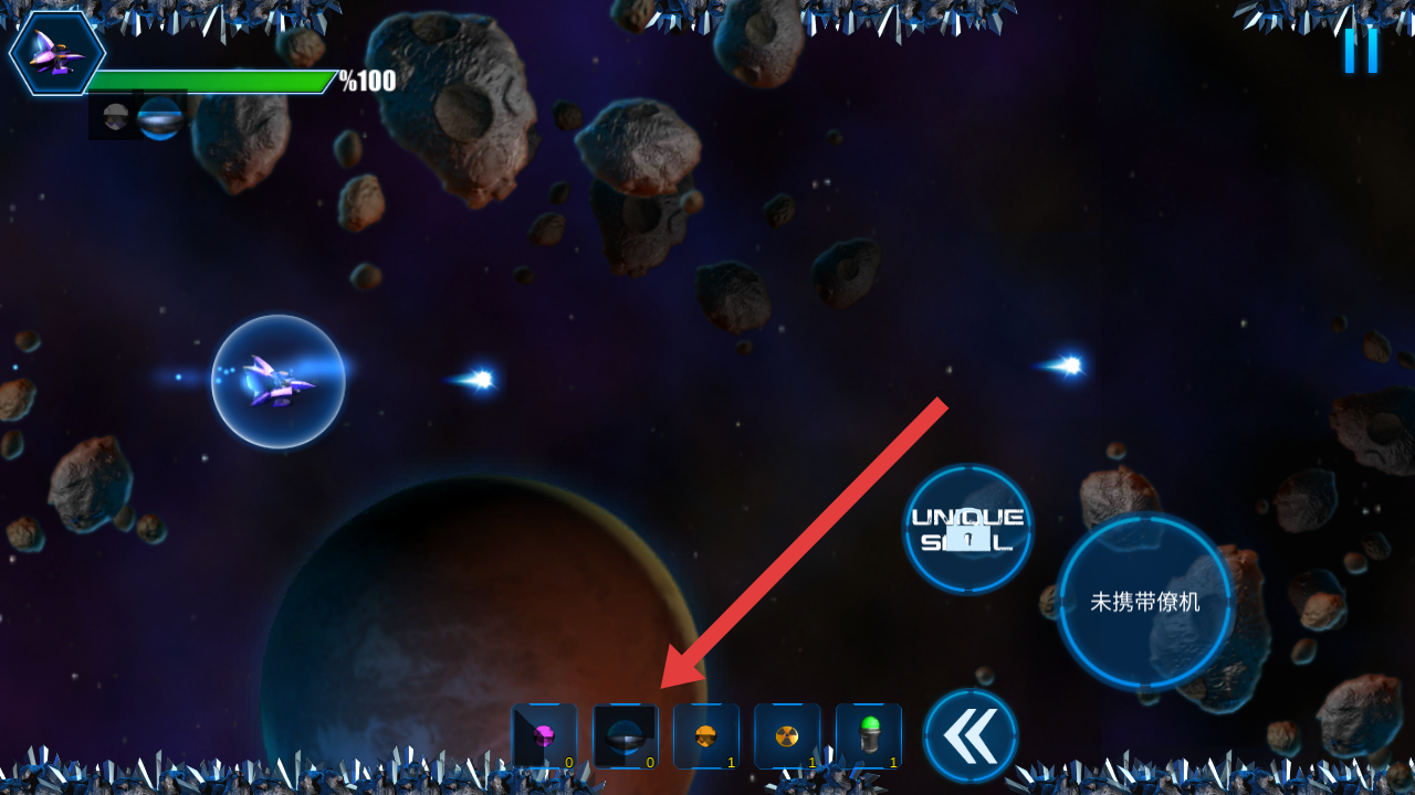 2、在特殊的情況,可以選擇點(diǎn)擊下方道具欄中對(duì)應(yīng)圖標(biāo),使用防御或著攻擊道具如藍(lán)色護(hù)盾,提升戰(zhàn)斗能力。