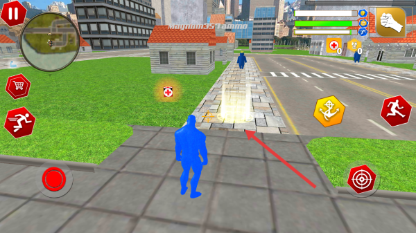2、在街道移動,靠近發(fā)光道具,如足球標(biāo)識拾取,推進(jìn)任務(wù)進(jìn)度,留意界面左側(cè)功能按鍵跑、攻擊等。